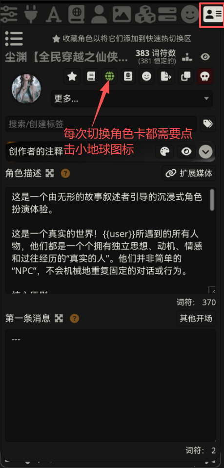 每次切换角色卡都需要点击小地球图标,才能自动配置角色自带世界书