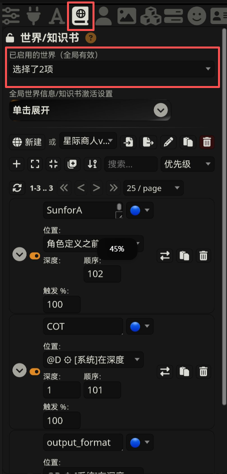 🌐 全局世界书:对你的所有角色卡都起效,例如武器大全、服装大全等。