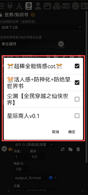 手动下载的世界书分为两类,【全局世界书】和【角色世界书】。